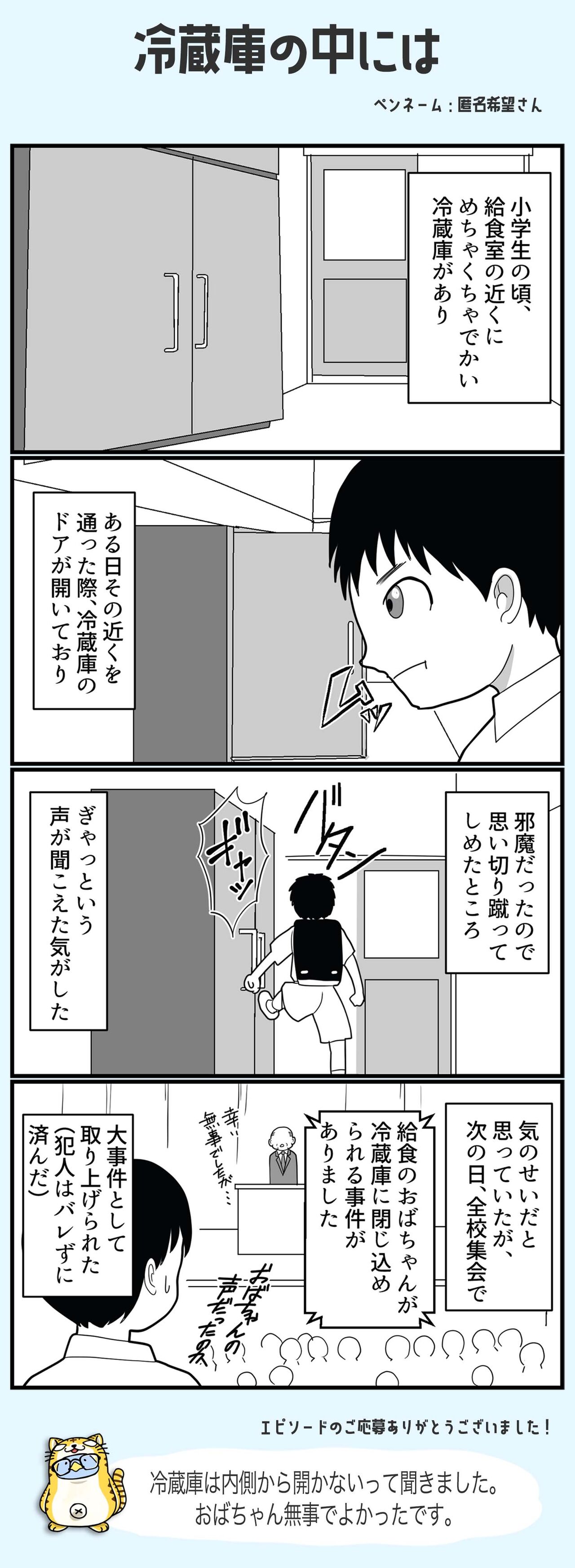 冷蔵庫の中には #フォロワーの失敗談 2022/08/05 漫画制作:ハニメメオさん(Twitter) < 前の記事次の記事 > コメント コメント一覧 (2) 1. 雲黒斎 2022/08/05 18:55 家にある冷蔵庫も内側から開けられないの? 0 滝沢ガレソ がしました 2. もう一歩 2022/08/28 13:13 1畳以上あるような業務用の冷蔵庫は中から開けられるよ 内側に向いてる棒を押す形だったりする 0 滝沢ガレソ がしました コメントフォーム 名前 コメント 記事の評価 リセット リセット 顔 星 情報を記憶 コメントを投稿する
