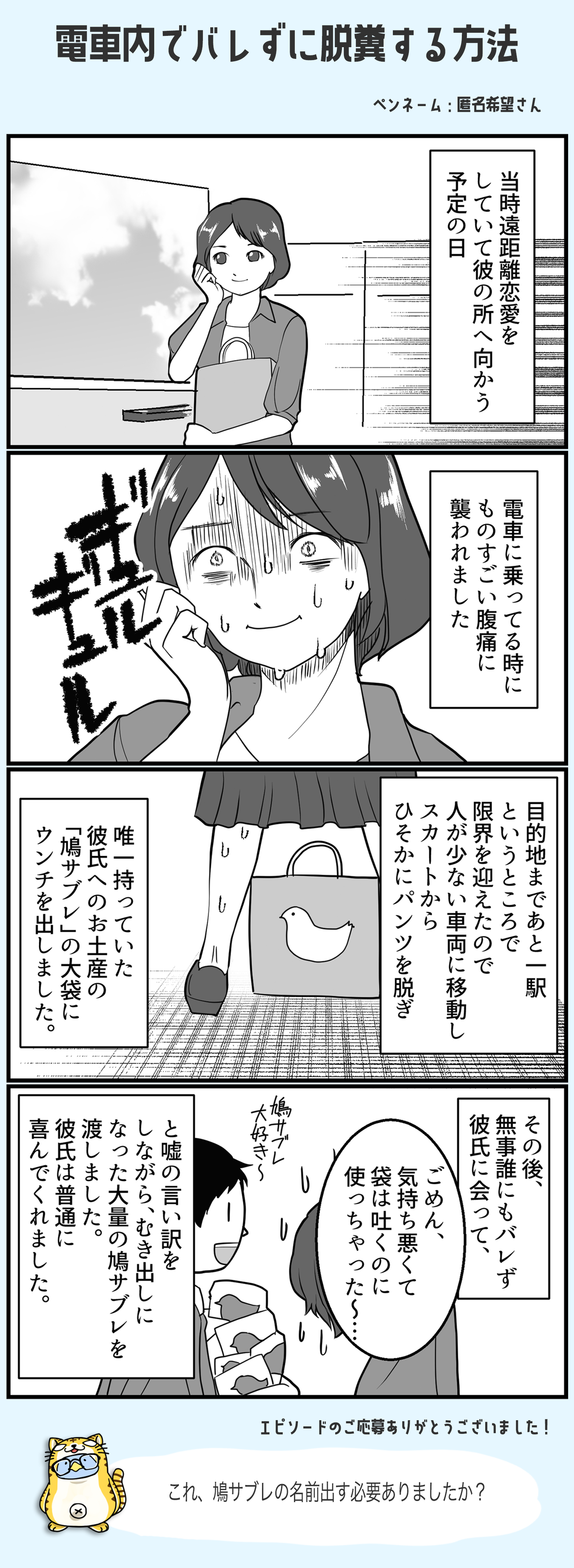 電車内でバレずに脱糞する方法#Twitterでしかできない話 2022/08/23 漫画制作:ハニメメオさん(Twitter) < 前の記事次の記事 > コメント コメント一覧 (3) 1. とおりすがりり 2022/08/23 21:42 人の少ない車両があって良かったね なかったら‥‥ 0 滝沢ガレソ がしました 2. 踊るチンポコリン 2022/11/29 00:24 俺ほどの愛が深い男になればサブレより彼女のうん◯の方が嬉しいってもんよ。 決して変態って訳じゃないぞ。 0 滝沢ガレソ がしました 3. 2024/02/05 19:48 おまえは変態だよ 0 滝沢ガレソ がしました コメントフォーム 名前 コメント 記事の評価 リセット リセット 顔 星 情報を記憶 コメントを投稿する