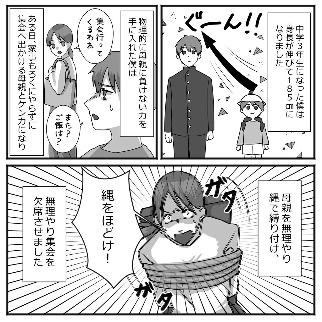 「身体が大きくなったので母親を縛りました」ってサラッて書いてますけどここだけとっても相当壮絶な体験…。窓から飛んだのも、2階だとわかって飛んだのか、それとも飛んだらたまたま2階で助かったのか…恐ろしいです。