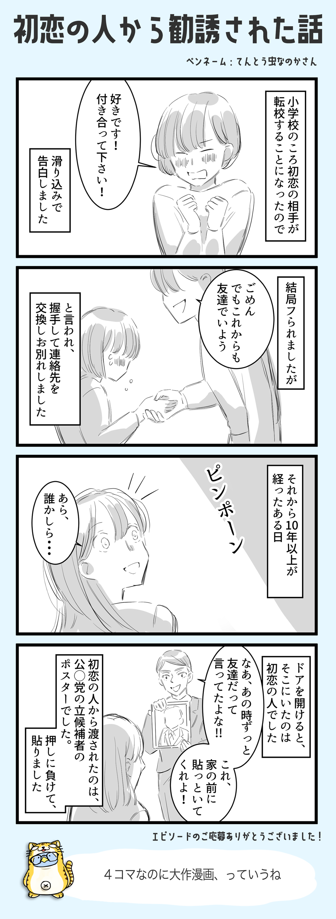 初恋の人から勧誘された話 #Twitterでしかできない話 2022/12/16 漫画制作:夏柴様 < 前の記事次の記事 > コメント コメントフォーム 名前 コメント 記事の評価 リセット リセット 顔 星 情報を記憶 コメントを投稿する