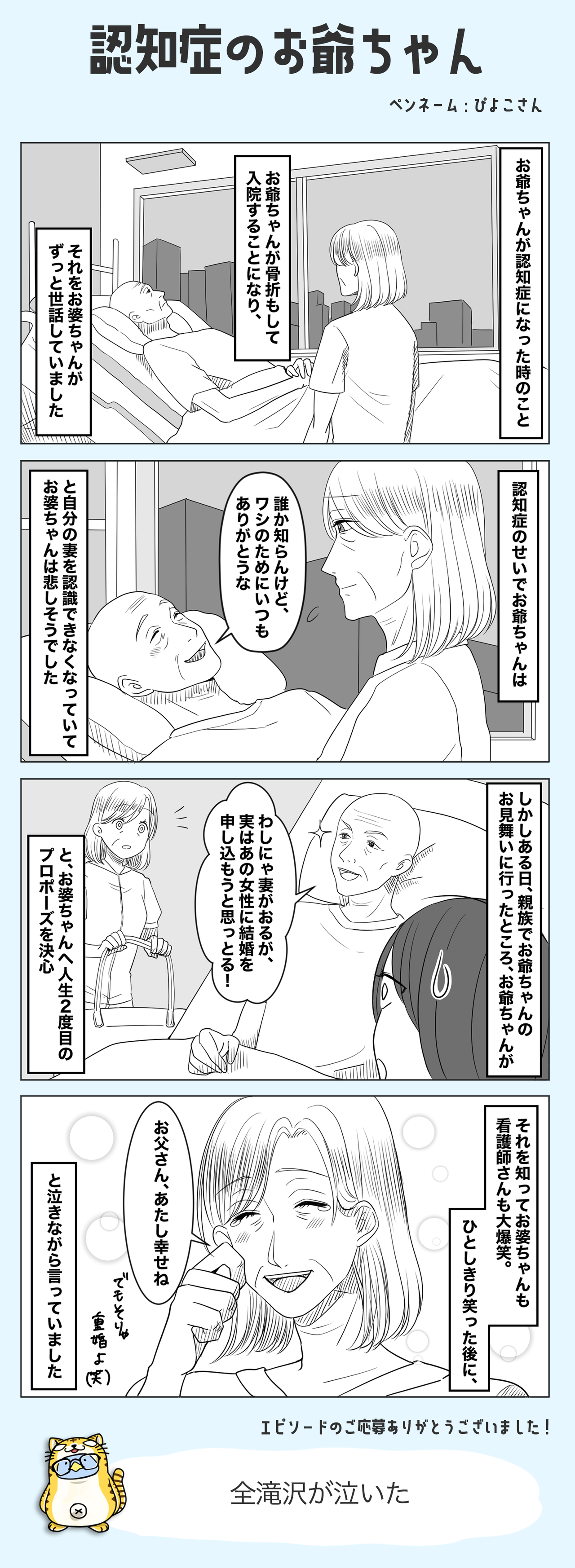 認知症のお爺ちゃん #ほっこりした話 2024/02/16 漫画制作:瀬戸うなぎ様 < 前の記事次の記事 > コメント コメント一覧 (3) 2. あ 2024/02/19 08:35 これ前もなかった?見覚えあるけどここで 0 滝沢ガレソ がしました 3. い 2024/02/19 10:49 骨折もしてではなく、骨折をしてだよ 0 滝沢ガレソ がしました 4. う 2024/02/21 17:32 絵が良いですね、伝わってきます。 0 滝沢ガレソ がしました コメントフォーム 名前 コメント 記事の評価 リセット リセット 顔 星 情報を記憶 コメントを投稿する