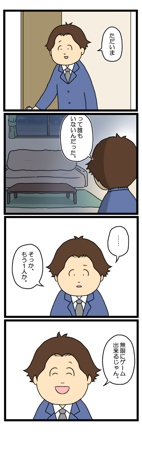 わかりあえない二人が結婚して、わかりあえないことがわかって離婚して妻は肩の荷が下りて自由になり、夫は自由にゲーム三昧の生活になれた。