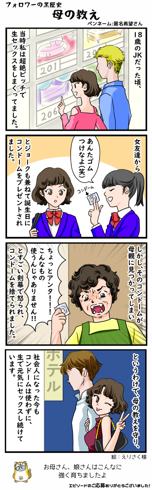 母の教え #フォロワーの黒歴史 2023/12/19 漫画:えりさく様(Twitter) < 前の記事次の記事 > コメント コメント一覧 (3) 1. 名前のない馬 2023/12/20 01:23 凄い短いミニスカでパンツが見えると困るから…ノーパンです、というジョークに似てる(あまり似てない) 0 滝沢ガレソ がしました 2. は? 2024/04/27 09:50 全て避妊してないのにできなかったら不妊症かも? 0 滝沢ガレソ がしました 3. ほんとこれ 2024/07/11 00:35 >>2 自分もこの子みたいな感じだったけど全く当たらなくて、いざ大人になって妊娠したくなった時に不妊だと知った。 命を作る行為を軽々しく行ったバチが当たったんだと思ってる。 0 滝沢ガレソ がしました コメントフォーム 名前 コメント 記事の評価 リセット リセット 顔 星 情報を記憶 コメントを投稿する