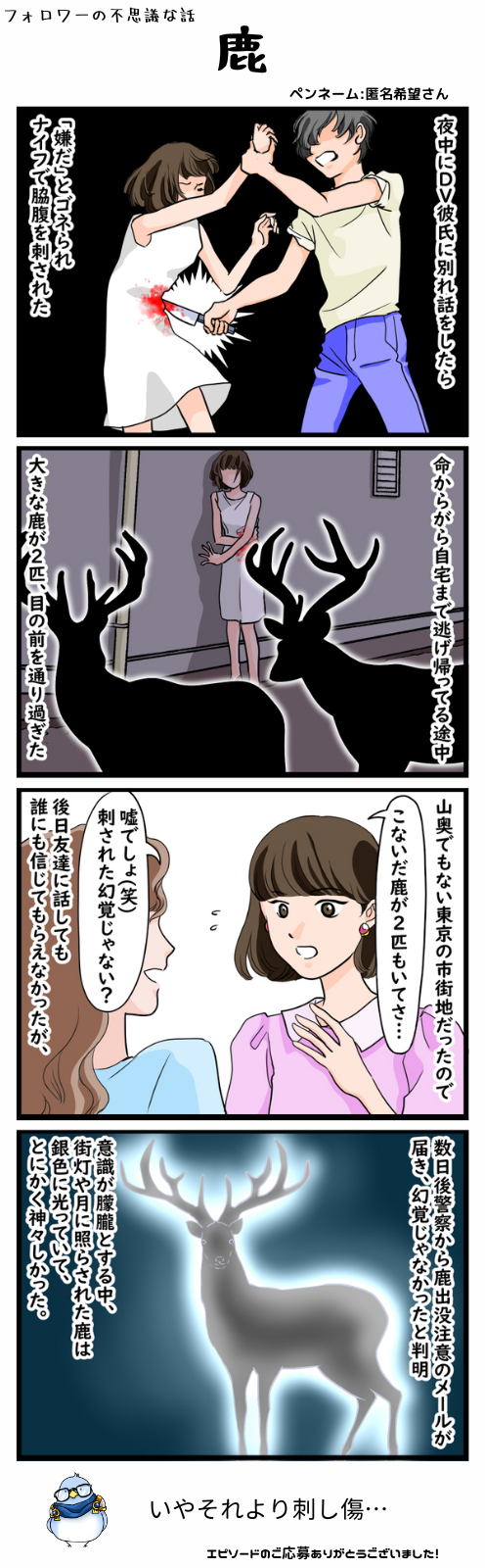 鹿 #フォロワーの不思議な話 2024/02/20 漫画:えりさく様(Twitter) < 前の記事次の記事 > コメント コメント一覧 (3) 1. しかも、 2024/02/21 12:21 鹿は神、イエーガーマイスター 0 滝沢ガレソ がしました 2. 鹿酒のお湯割り 2024/02/21 17:22 >>1 風邪気味の時に薄めに飲むと効くかもね、少しね 0 滝沢ガレソ がしました 3. 救急車呼べや 2024/07/23 14:48 ハリポタの守護霊だっけ? 0 滝沢ガレソ がしました コメントフォーム 名前 コメント 記事の評価 リセット リセット 顔 星 情報を記憶 コメントを投稿する