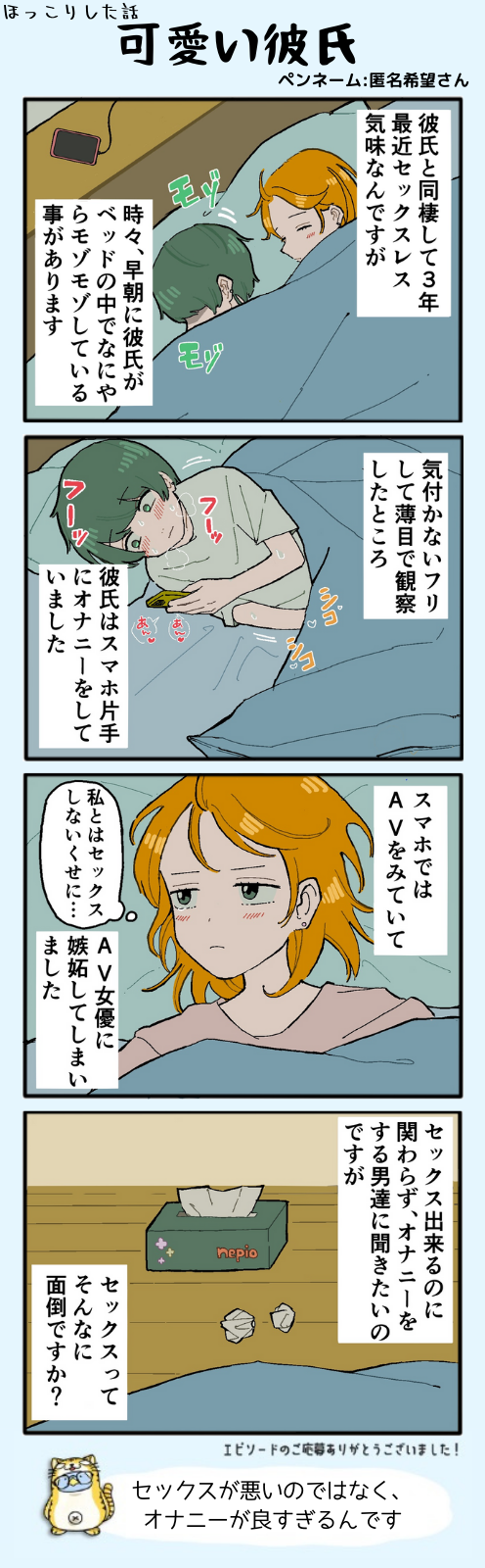 浮気せずにオナニーで我慢してくれていてかわいいほっこりみたいなことなんか?